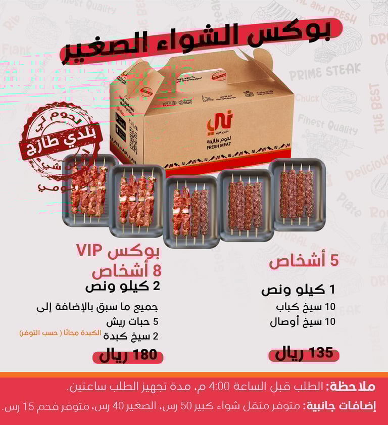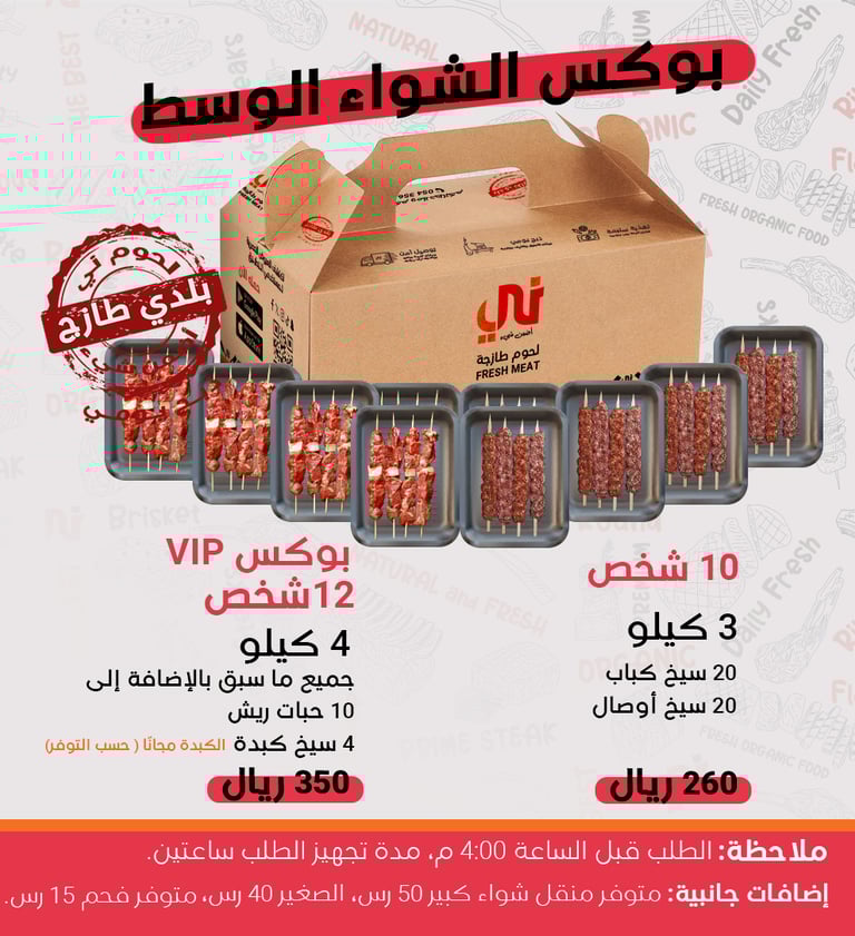 نحن متخصصون في توفير اللحوم الطازجة من الغنم والبقر والحاشي، مع التركيز على تلبية ذائقة العميل وتقديم أفضل جودة ممكنة.